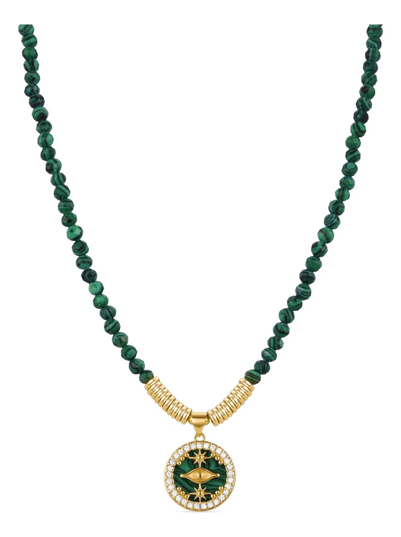 Collier Luxenter en argent 925 avec malachite et plaqué or 18k - Locare - Vert