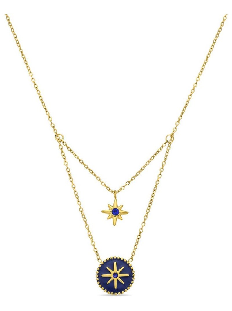 Collier Luxenter en laque bleue, finition or jaune 18 carats - Iskha - Bleu