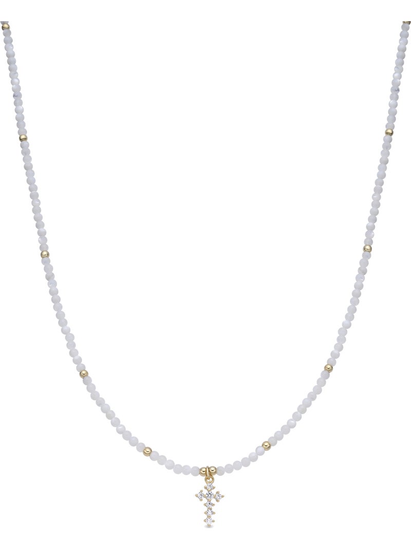 Collier Luxenter en nacre blanche, finition or jaune 18k - Nyali - Blanc