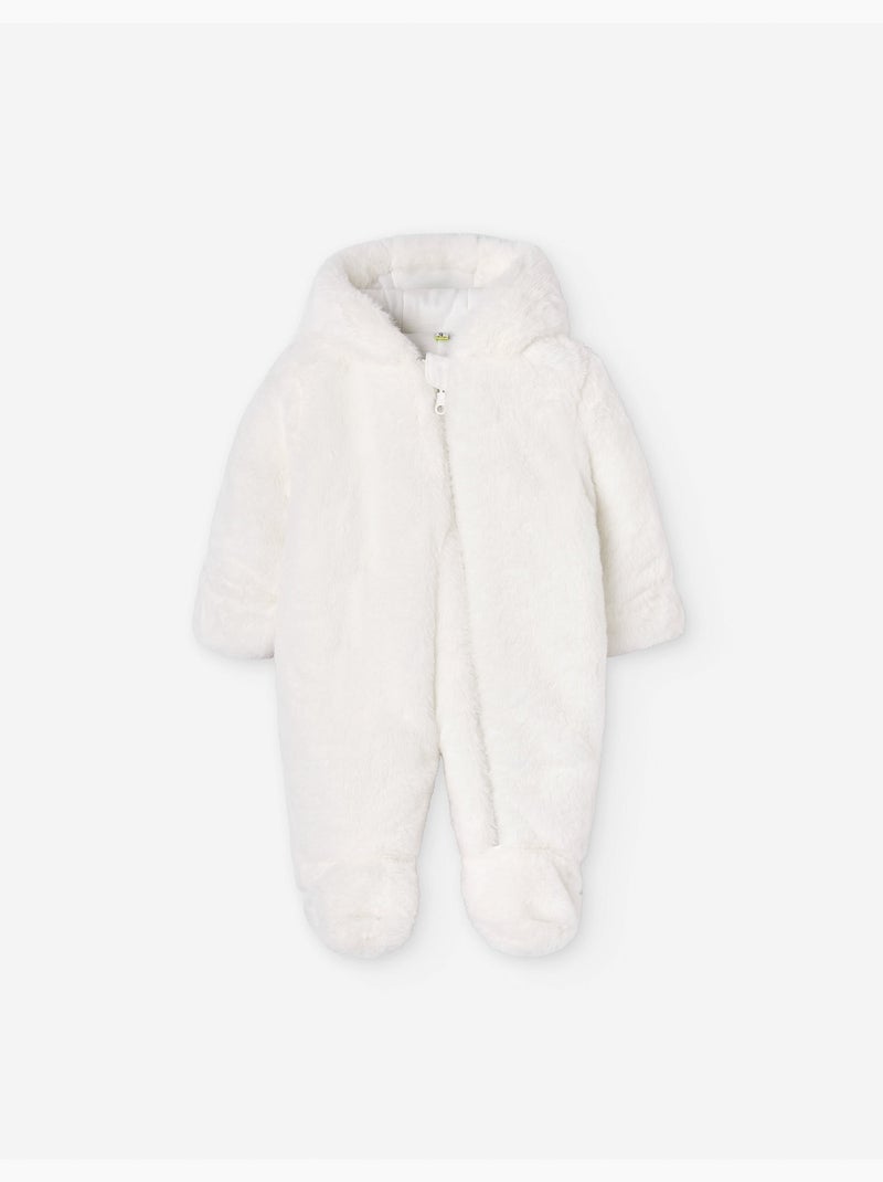 Combipilote en peluche douce avec capuche et oreilles 3D - Blanc Ecru