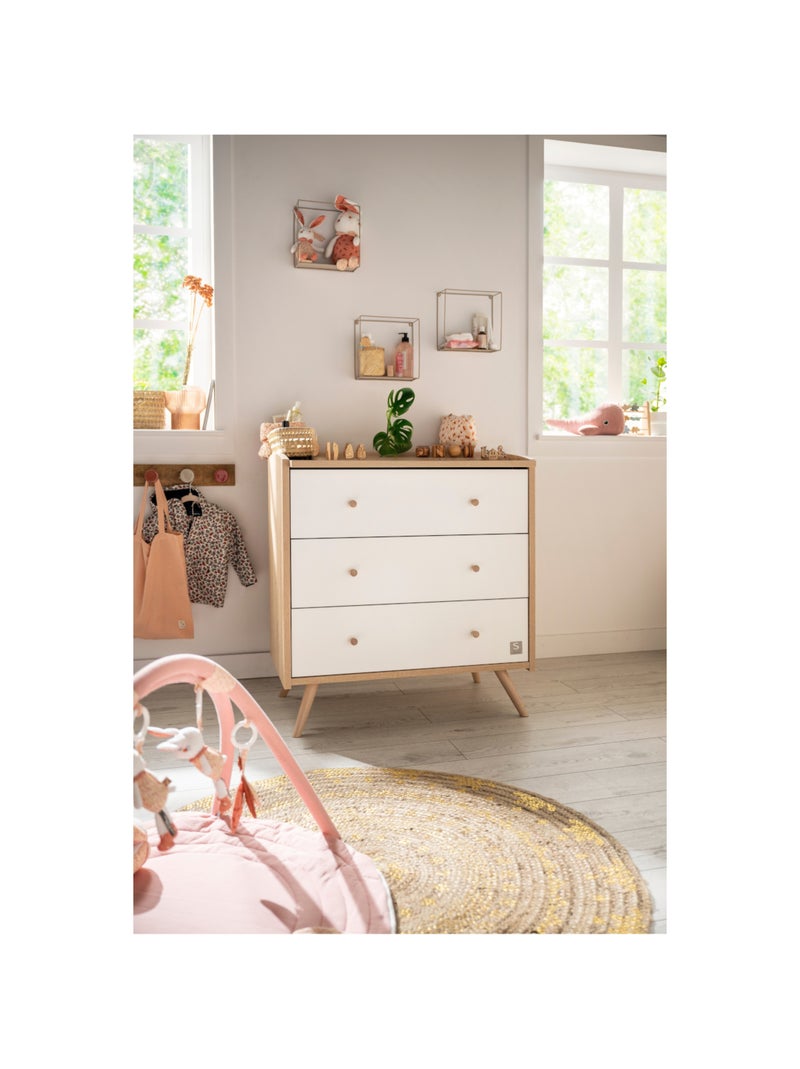 Commode 3 tiroirs - SAUTHON - Blanc Marron