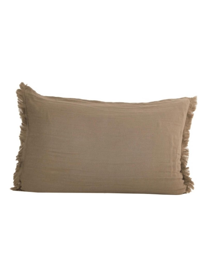 Coussin à franges en coton - Taupe