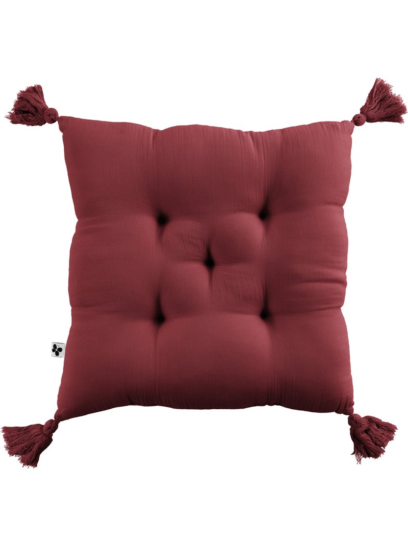 Coussin capitonné - Gaze de coton - + Pompons - Gaïa - Bordeaux