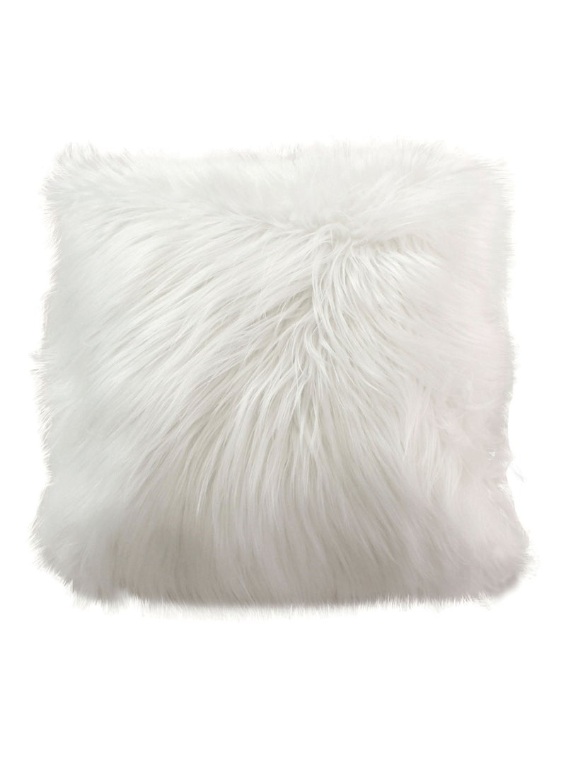 Coussin déhoussable imitation fourrure long poil - Blanc