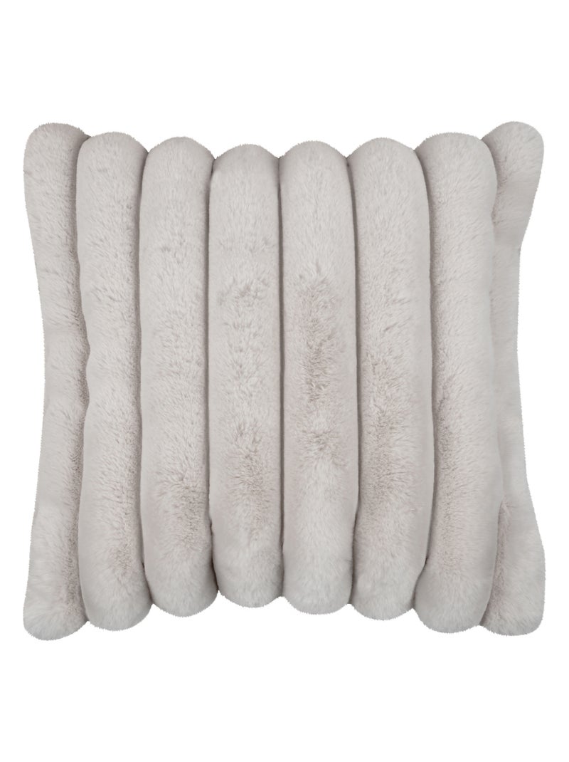 Coussin en imitation fourrure ultra douce à bandes - Ecru