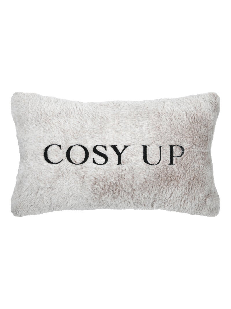 Coussin imitation fourrure brodé "Cosy up" - Gris