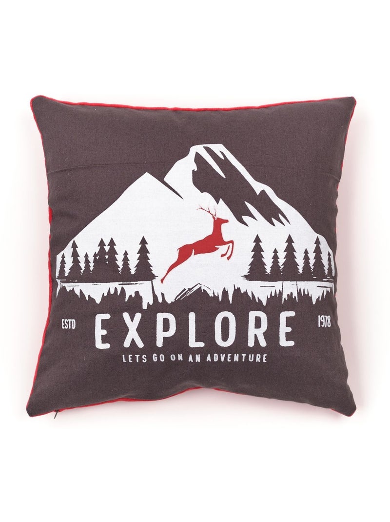 Coussin imprimé coton MOUNTAIN - gris anthracite