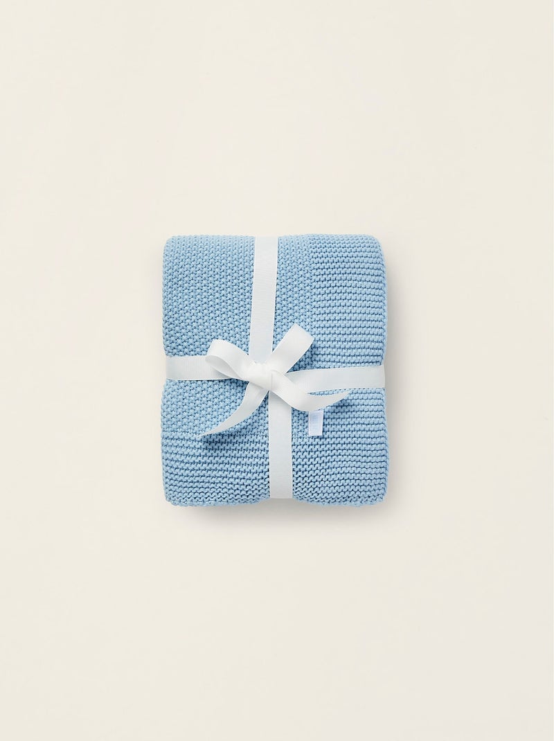 Couverture tricotée 100% coton - Bleu clair