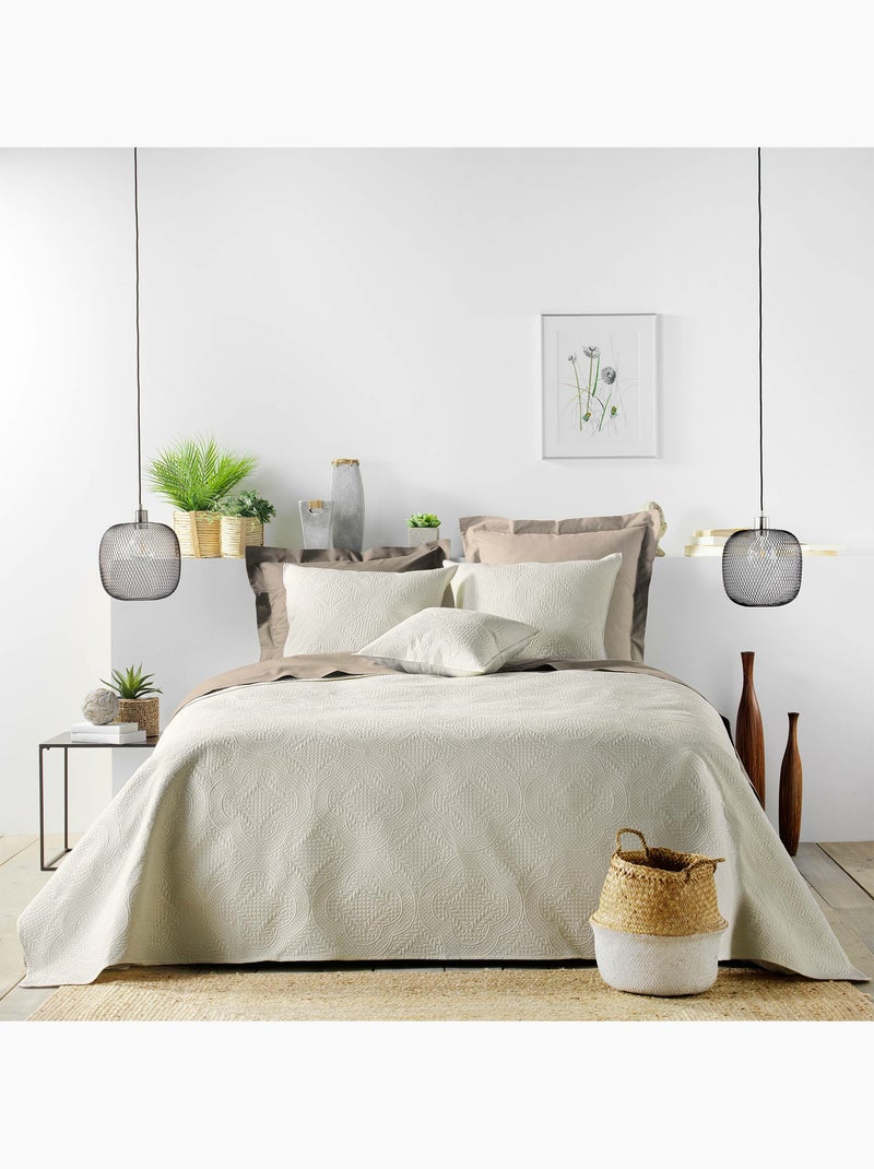 Couvre-Lit Matelassé et 2 Taies d'Oreiller Romane - Beige naturel