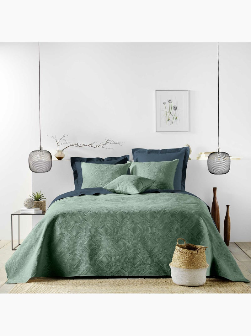 Couvre-lit matelassé + 2 housses de coussin en microfibre unie Romane - Vert cèdre