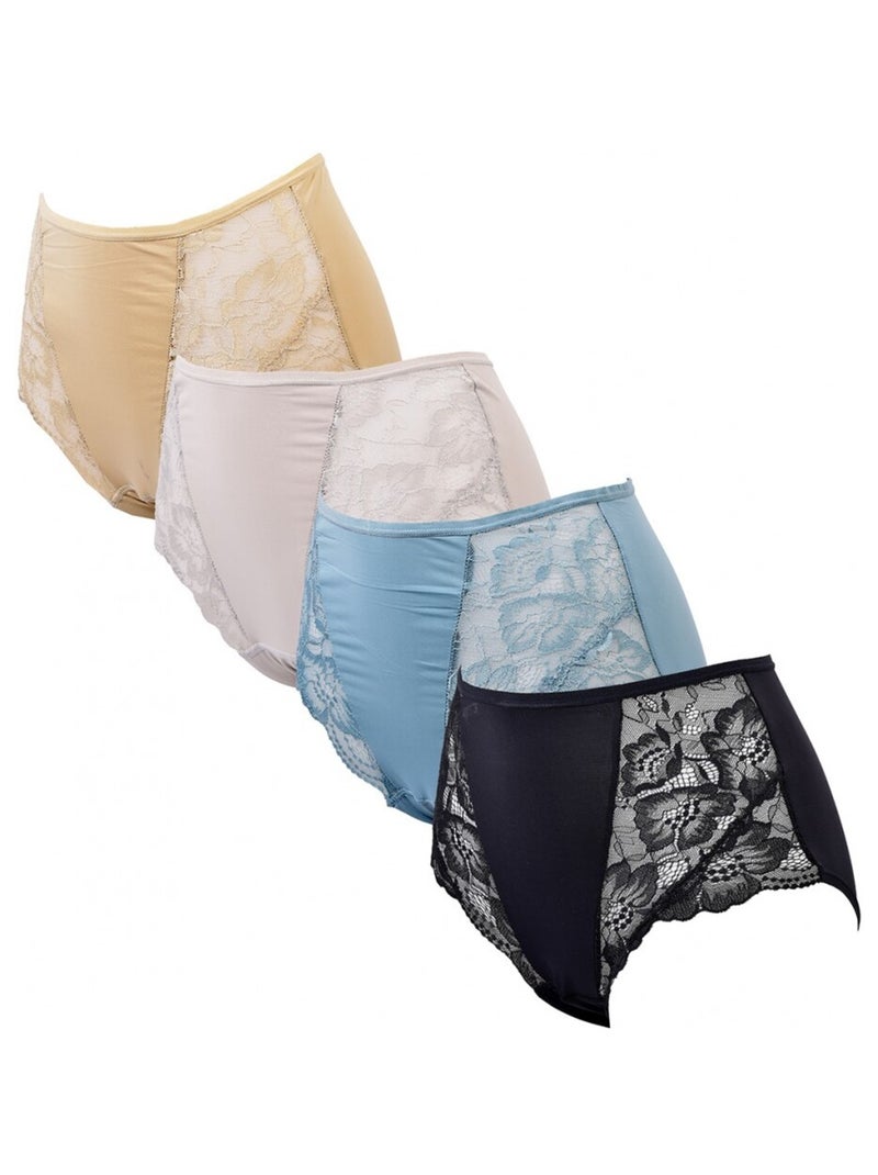 Culotte Microfibre TRESS Dentelle - Pack de 4 - Bleu Beige Noir