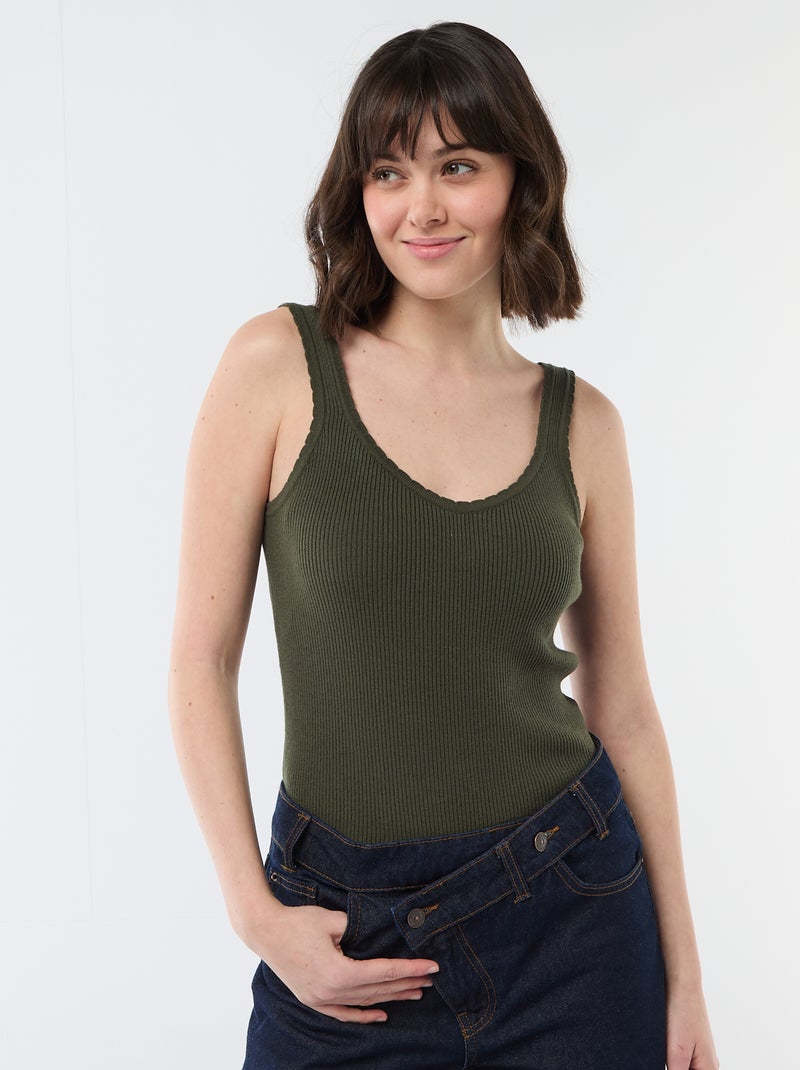 Débardeur uni en matière côtelée - Vert
