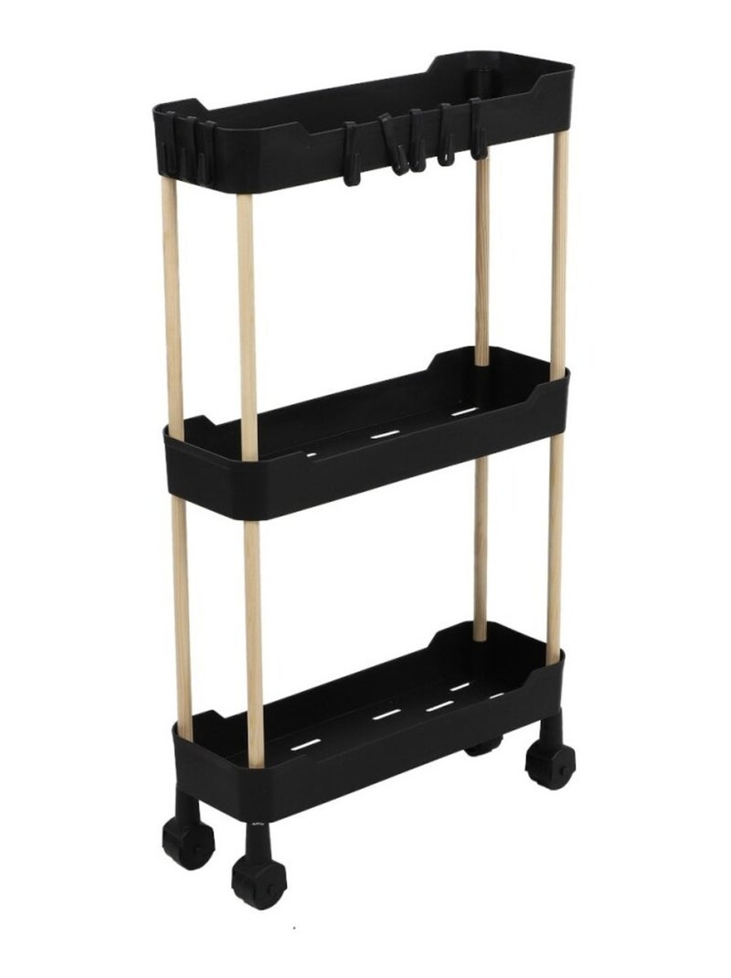 Desserte à roulettes 3 niveaux pour espaces étroits - Noir