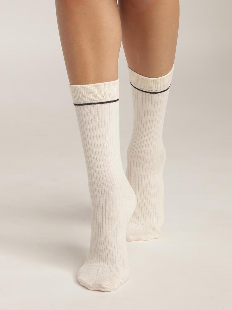 Dim Icons, Mi-chaussettes Unisexe effet côtelé - Corail/Turquoise/Crème