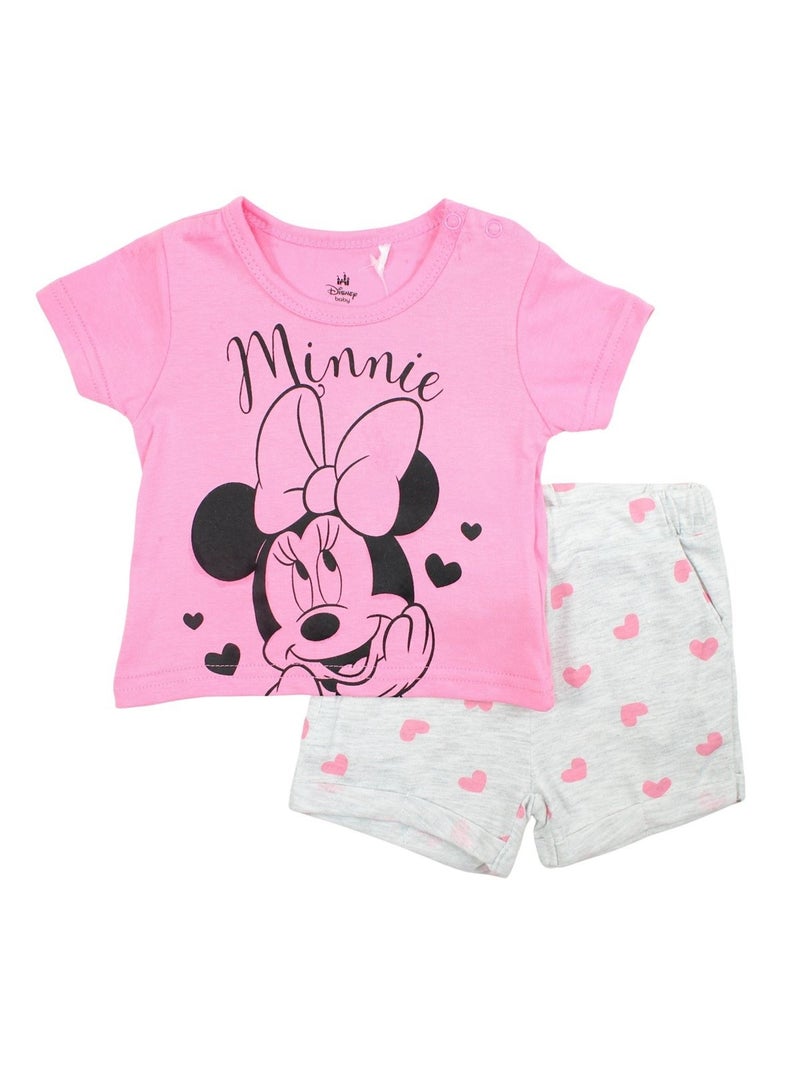 Disney - Ensemble T-shirt et Short bébé Minnie - Rose
