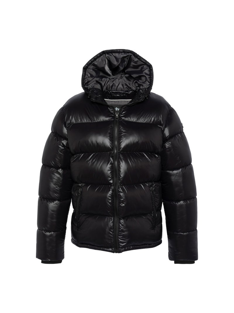 Doudoune à capuche noire matelassée en nylon avec une coupe droite - Noir