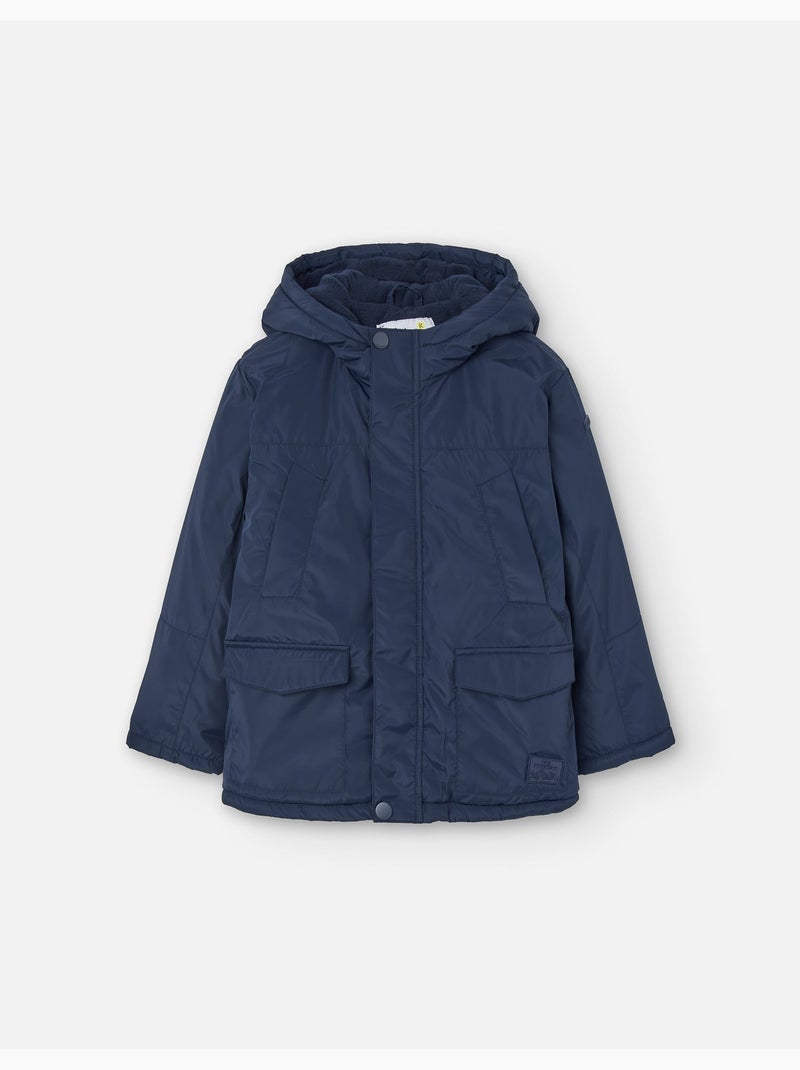 Doudoune en caoutchouc à capuche et doublure polaire - Bleu clair