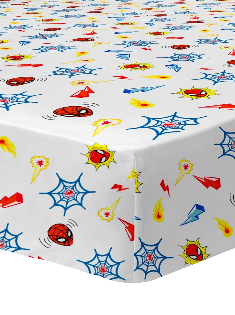 Drap-housse imprimé 100% coton, SPIDERMAN HOME AVENGER - Blanc