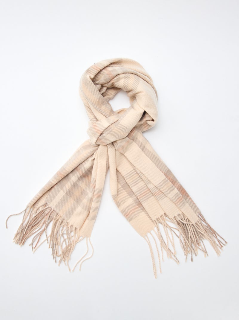 Echarpe carreaux à frange - Beige