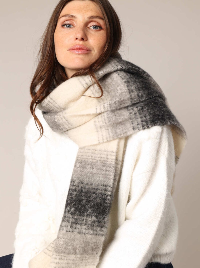 Écharpe moelleuse à gros carreaux, couleurs dégradées 'Deeluxe' - Gris