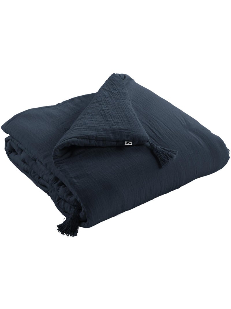 Édredon – Double Gaze de Coton 125 gr/m² – Ultra doux - Gaïa - Bleu foncé