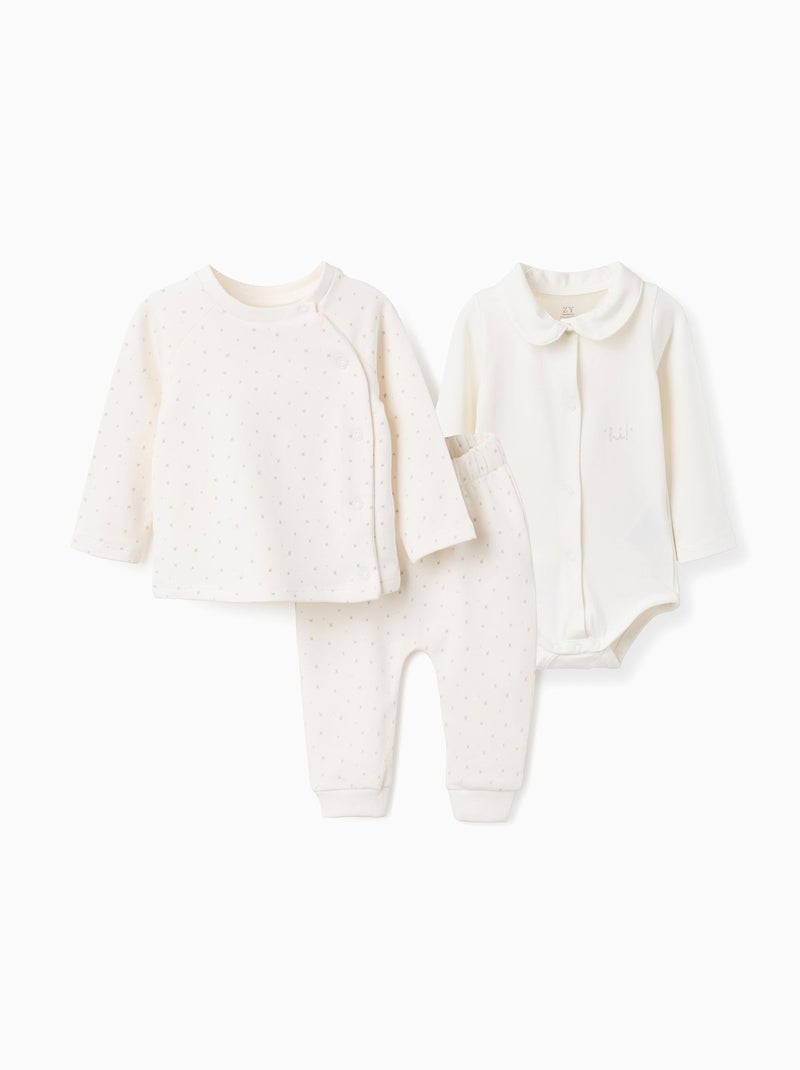 Ensemble 3 pièces en coton peigné à motif d'étoiles - Blanc