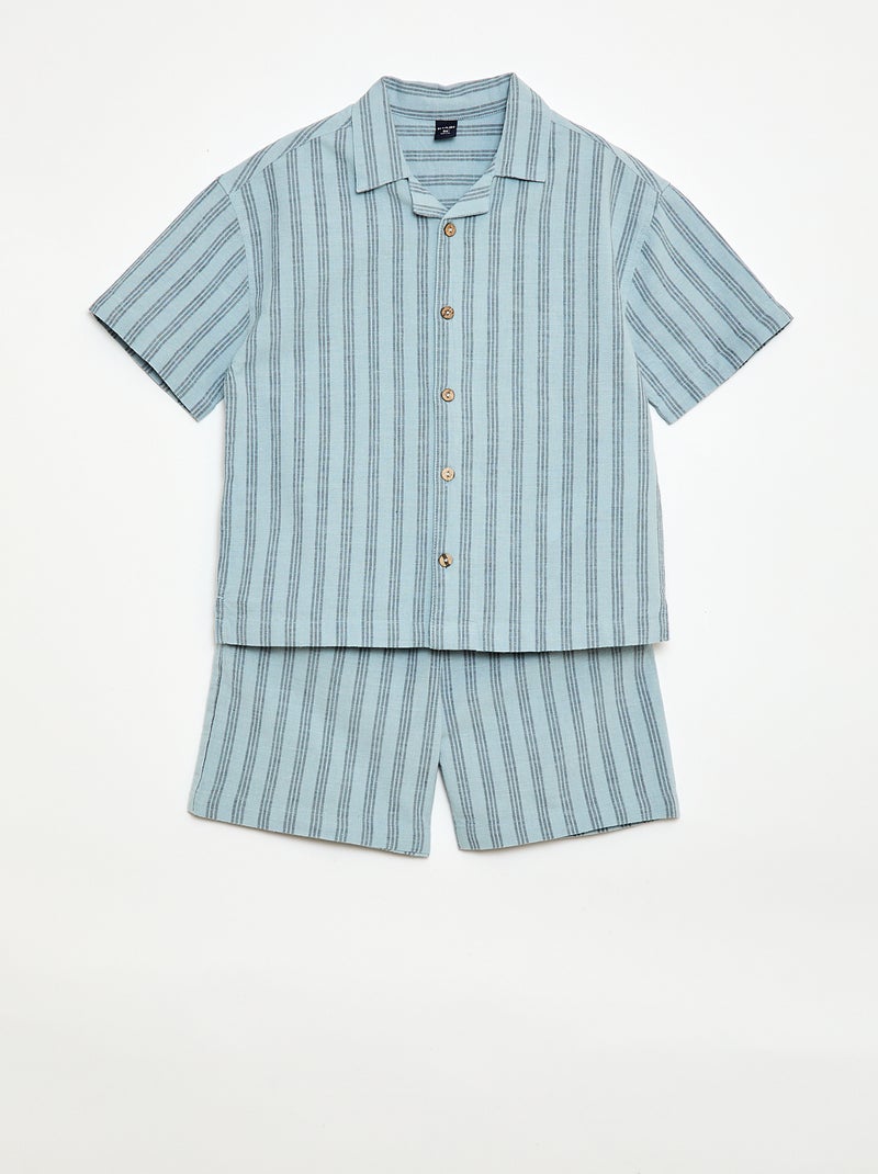 Ensemble à rayures chemise + short - Bleu
