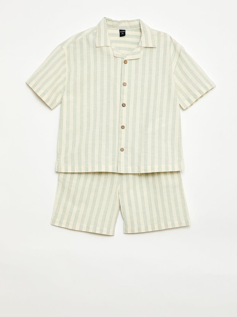 Ensemble à rayures chemise + short - Vert