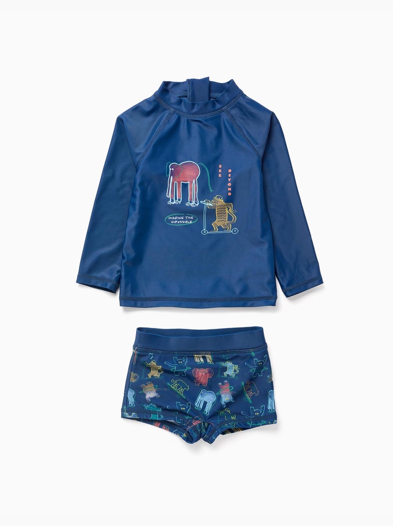 Ensemble de bain avec protection UV 40+ et motif - Bleu foncé