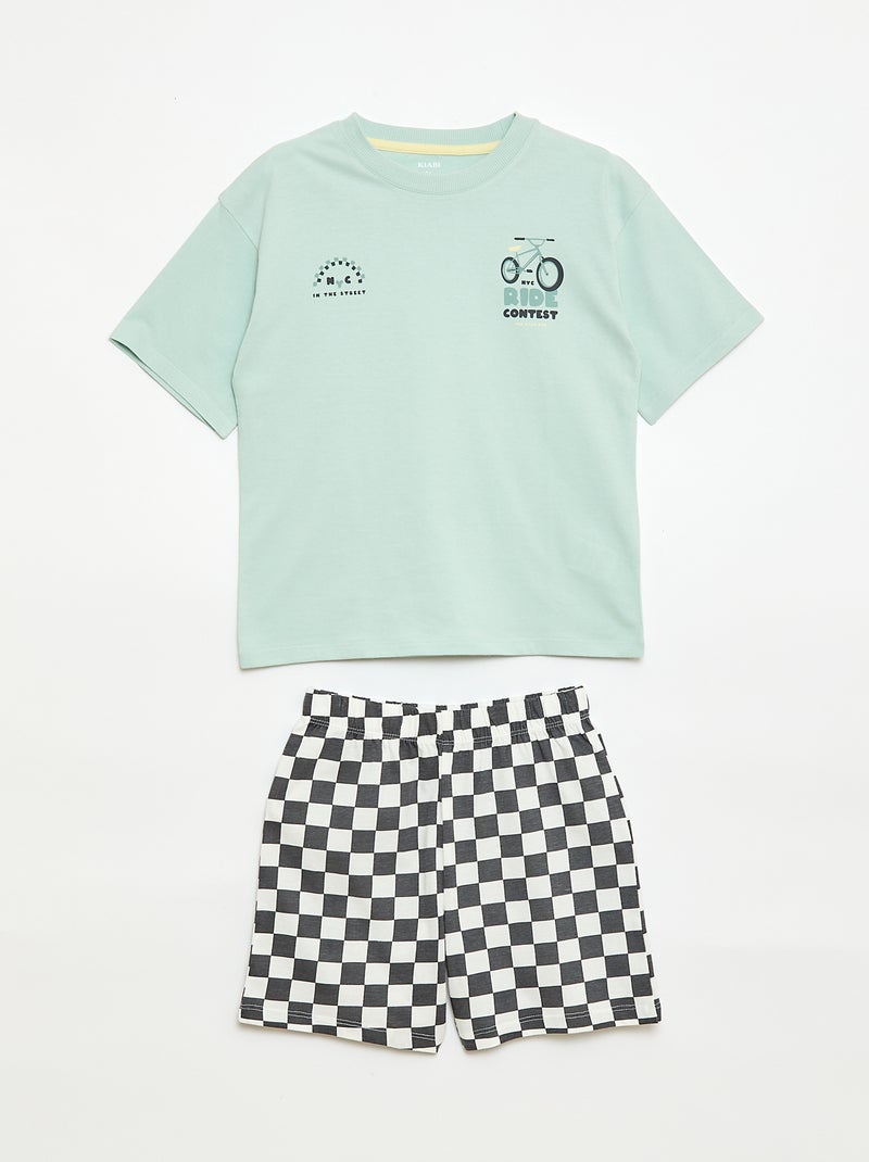 Ensemble de pyjama court 2 pièces T-shirt + short - Vert