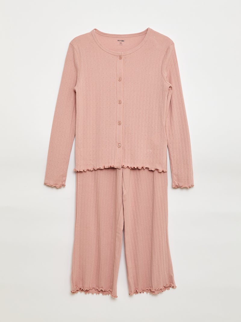 Ensemble de pyjama en maille pointelle - 2 pièces - Rose