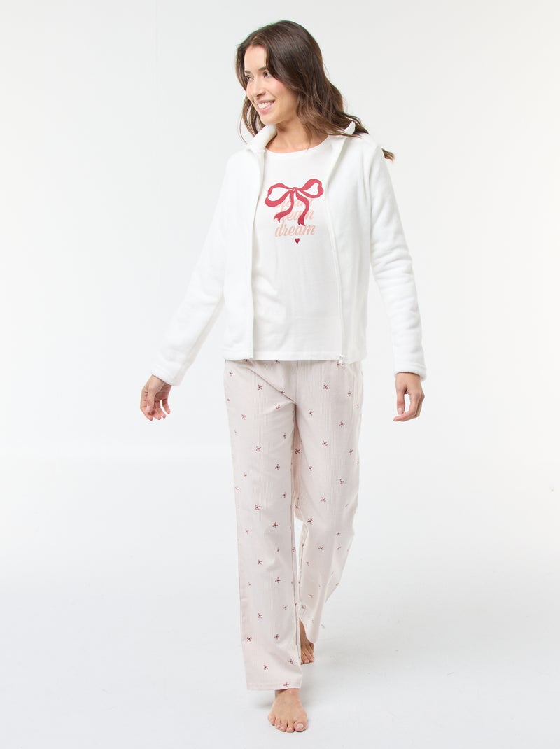 Ensemble de pyjama long + sweat zippé en polaire - 3 pièces - Blanc