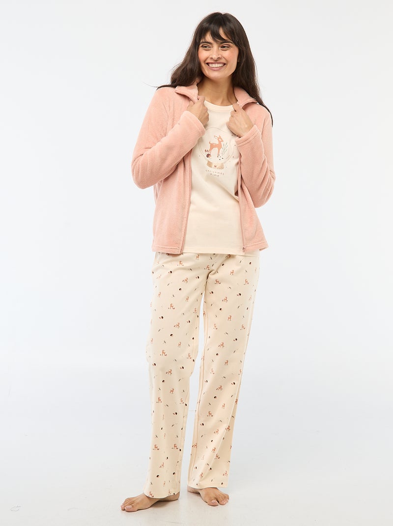 Ensemble de pyjama long + sweat zippé en polaire - 3 pièces - Rose