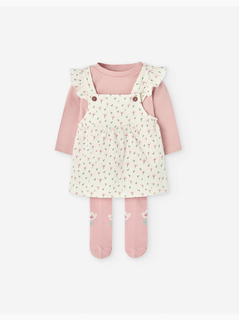 Ensemble de T-shirt, robe salopette et collants - Blanc