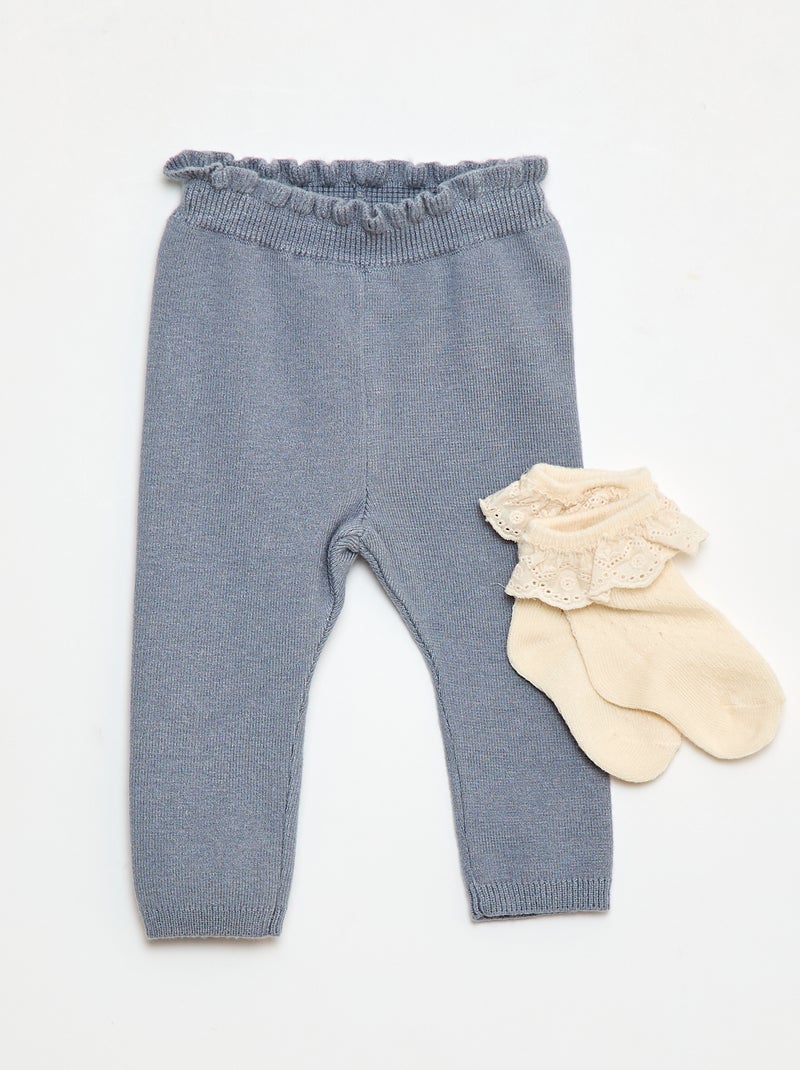 Ensemble Legging fantaisie + chaussette en dentelle - Bleu