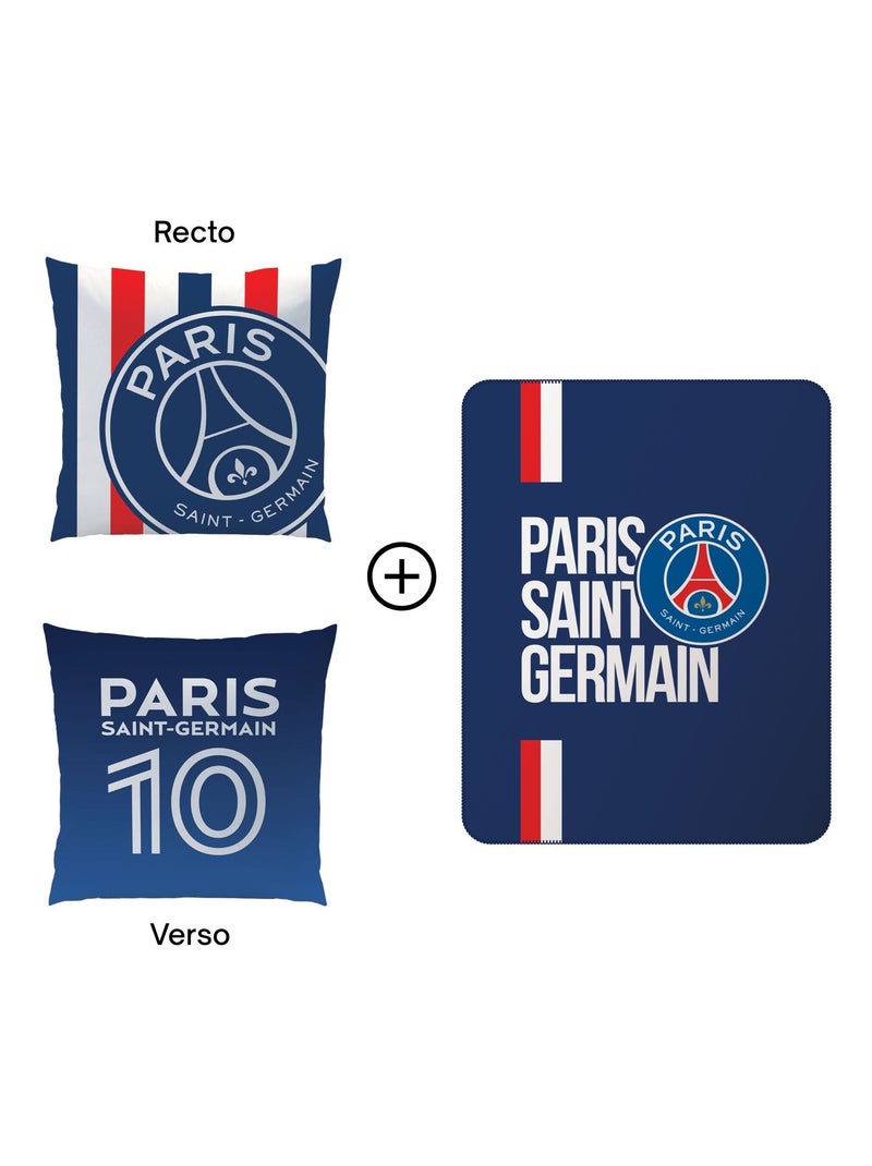 Ensemble Plaid classic et Coussin, PSG RAYURES - Bleu