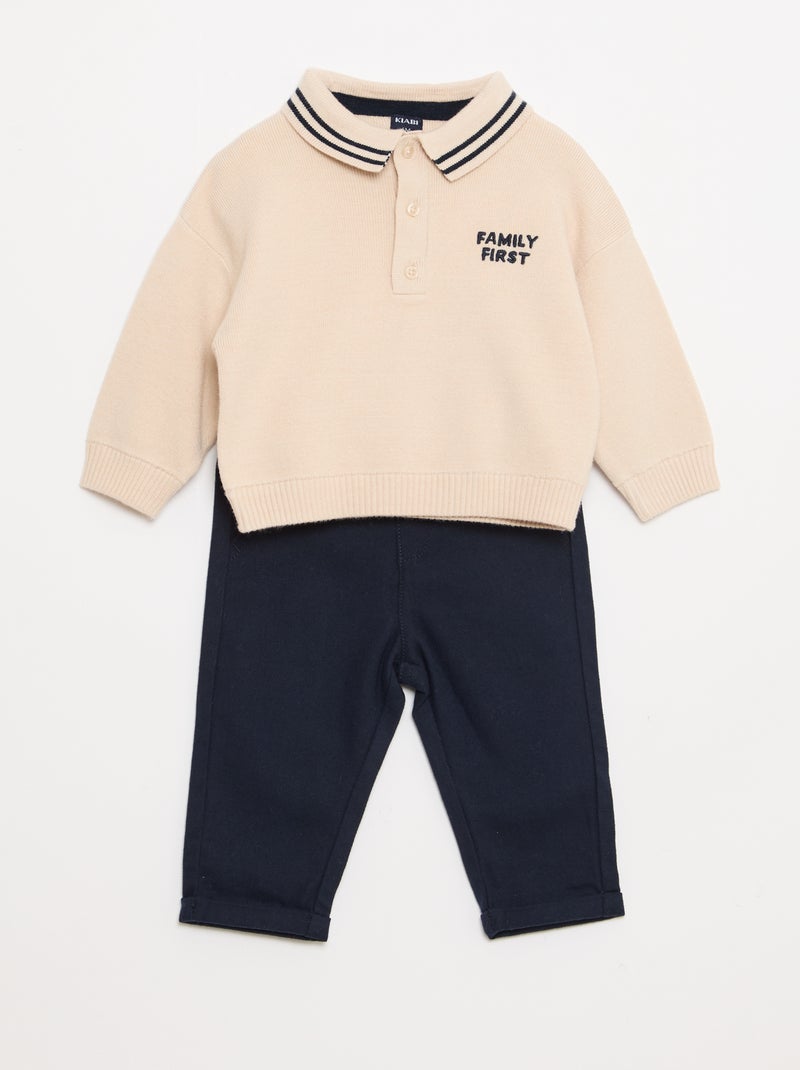 Ensemble polo chaud + pantalon - 2 pièces - Beige