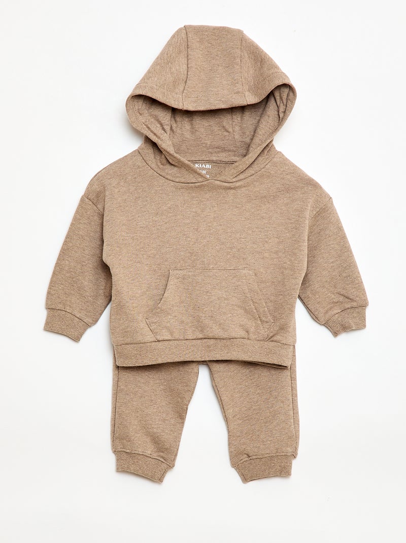 Ensemble sweat à capuche + jogging monochrome - 2 pièces - Beige