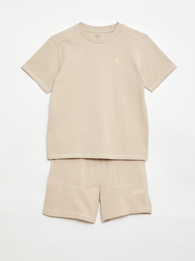 Ensemble t-shirt + short en piqué de coton - Beige