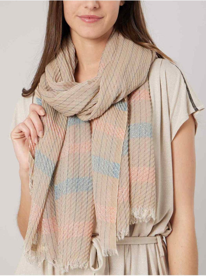 Foulard femme à rayures texturé 'Deeluxe' - Gris taupe