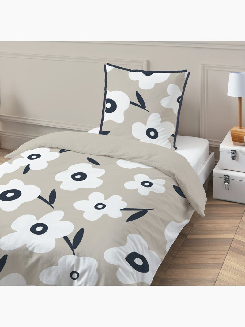 Future Home - Parure de lit 1 personne en coton imprimé fleurs - Beige