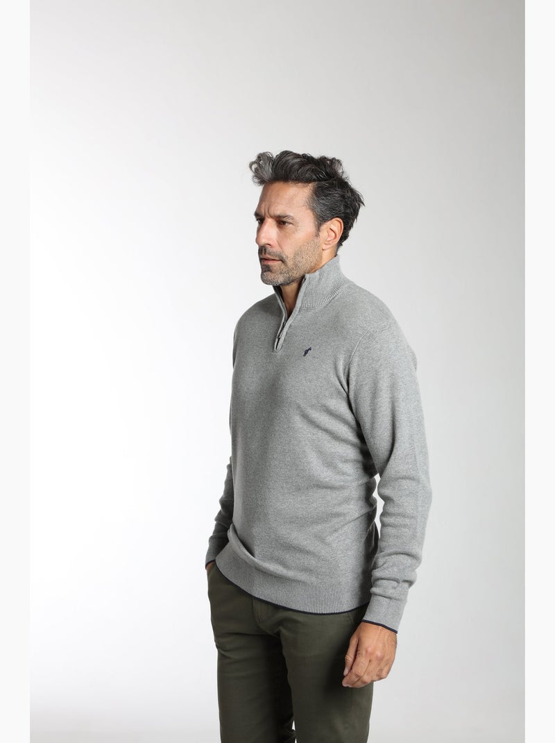 Gentleman Farmer - Pull col camionneur en coton MILANO CAMIONNEUR - Gris