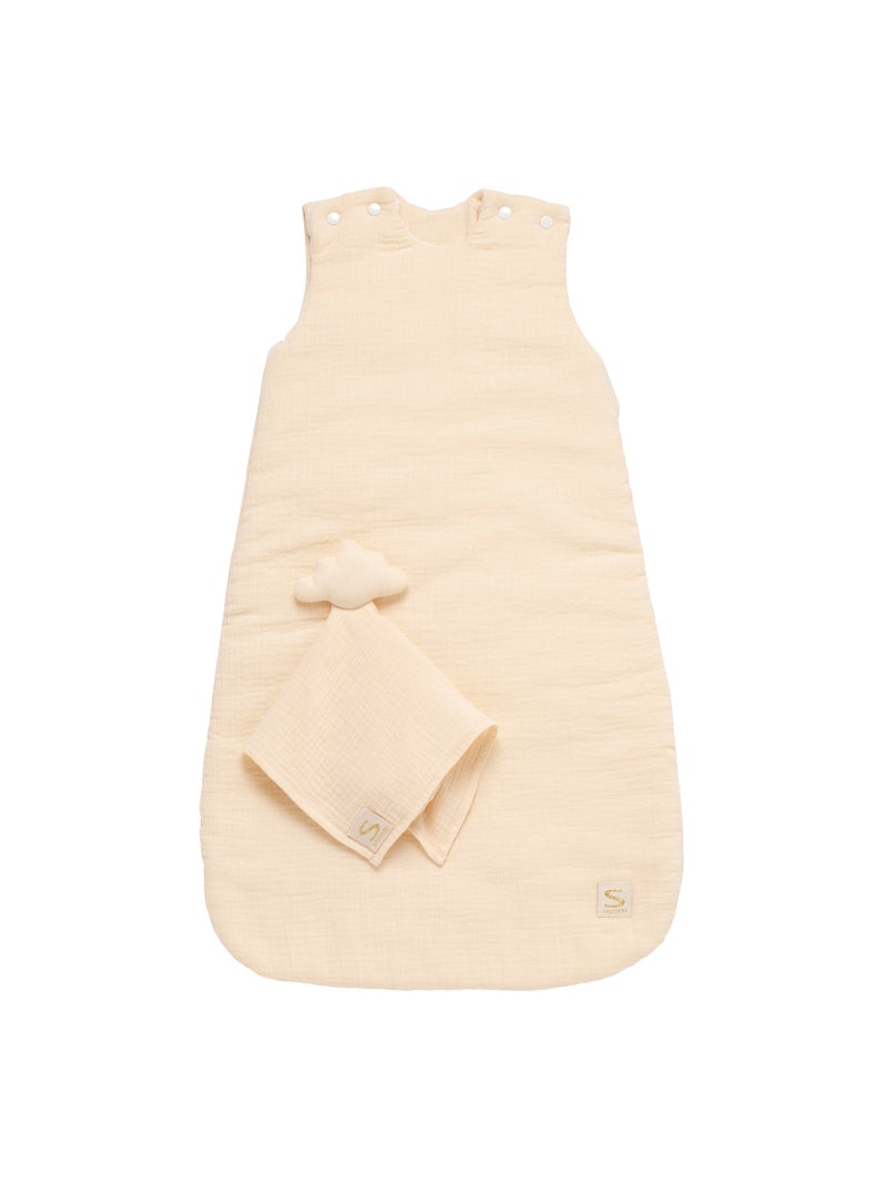 Gigoteuse bébé hiver en double gaze de coton et son doudou mouchoir - SAUTHON - Beige
