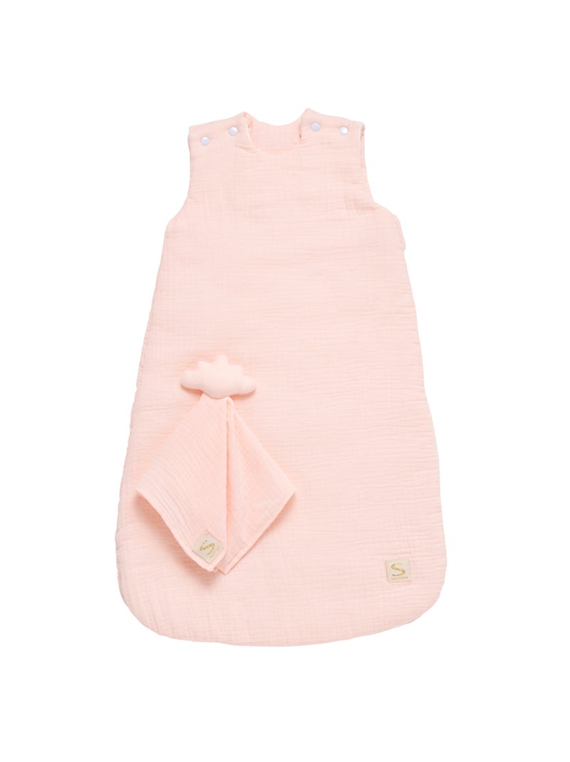 Gigoteuse bébé hiver en double gaze de coton et son doudou mouchoir - SAUTHON - Rose