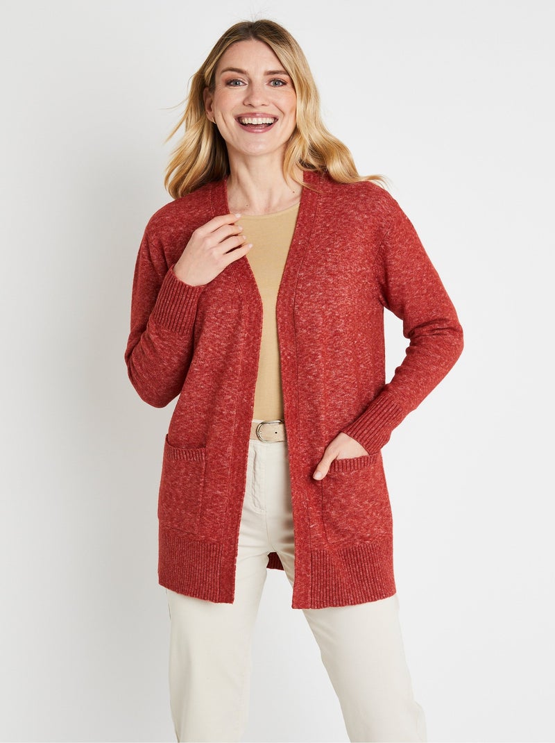 Gilet chiné long bord à bord avec laine - Brique