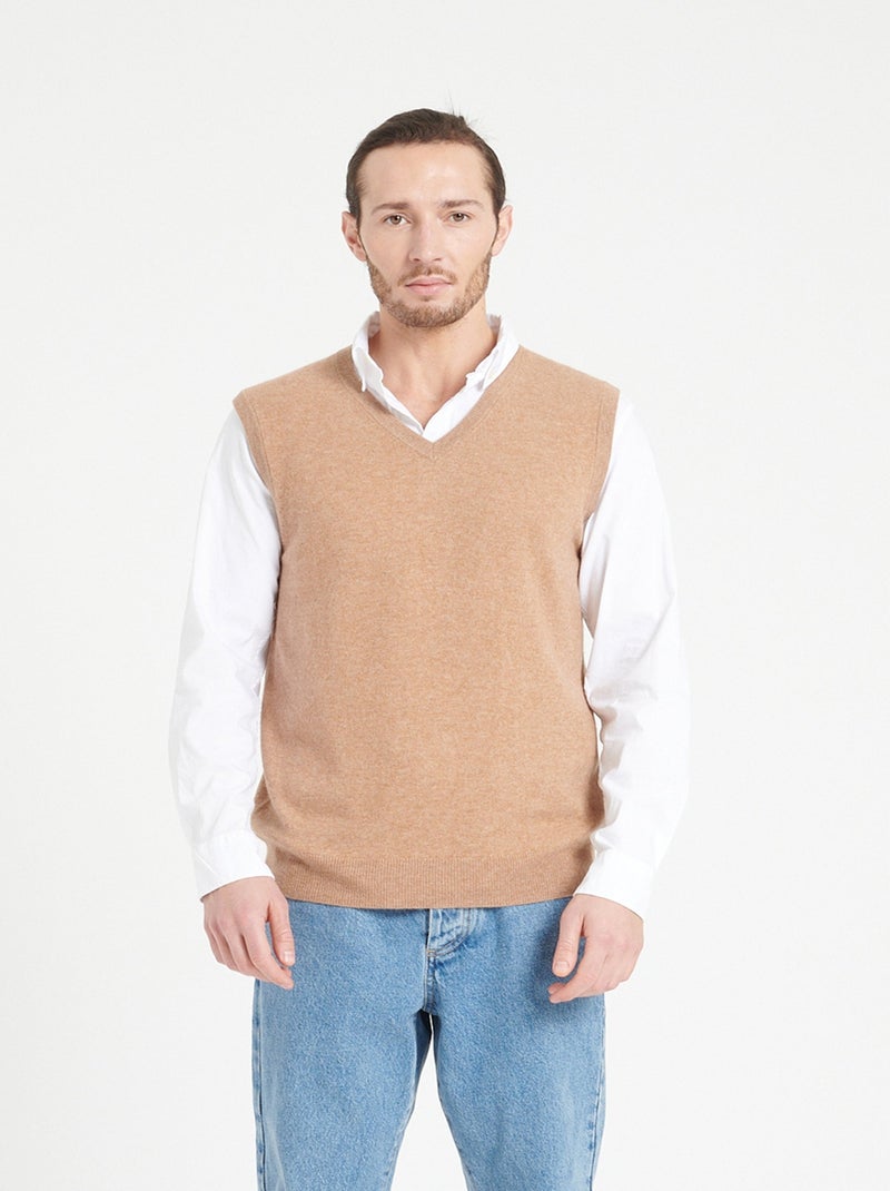 Gilet col V sans manches homme 100% cachemire - LUKE 9 - Camel