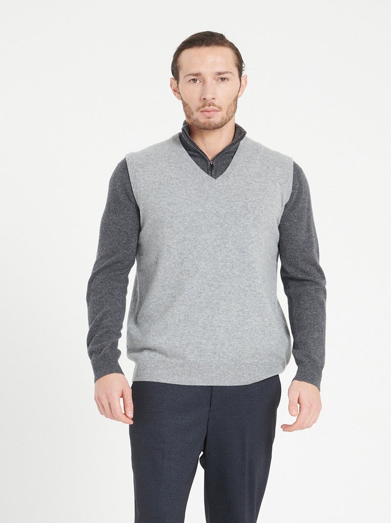 Gilet col V sans manches homme 100% cachemire - LUKE 9 - Gris clair