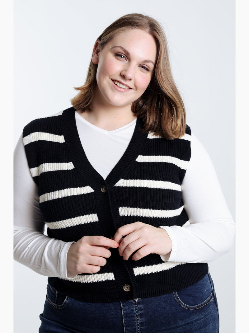 Gilet marinière court sans manches - Bleu marine