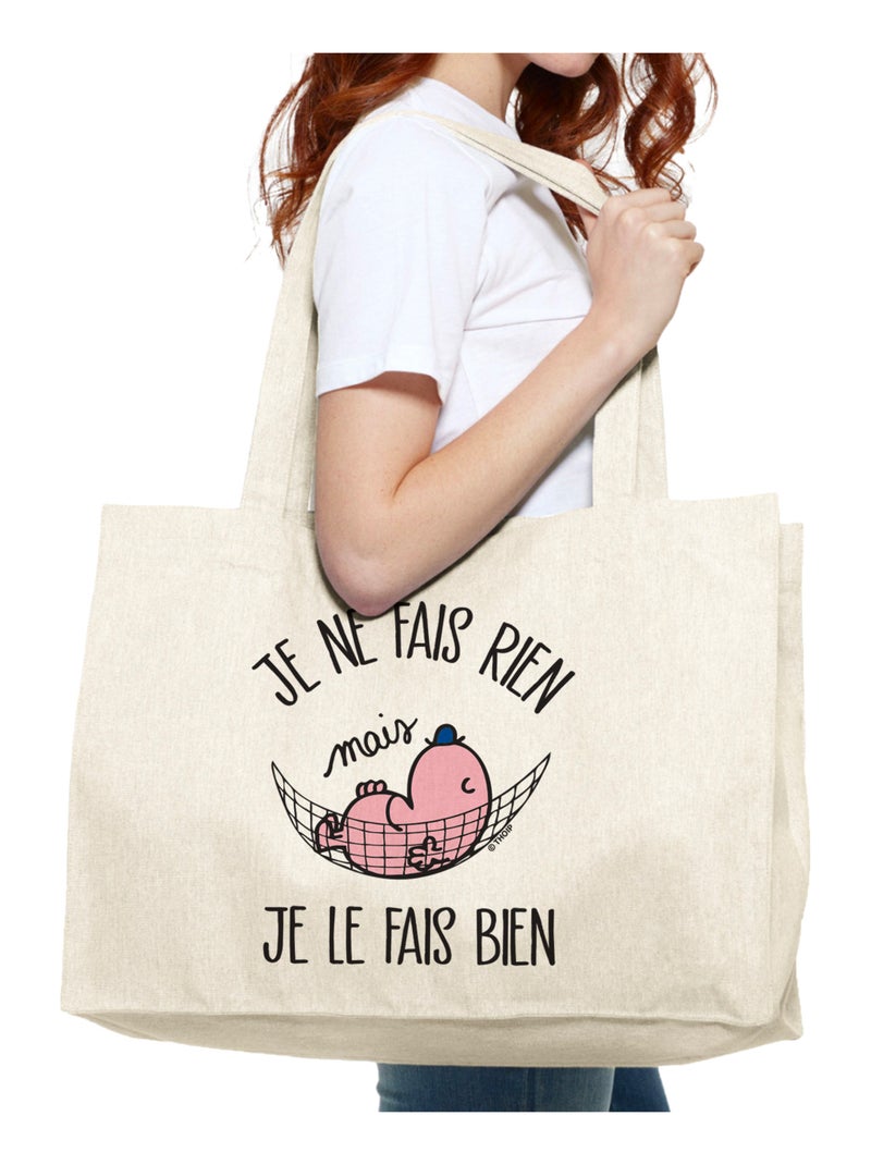 Grand cabas JE NE FAIS RIEN MAIS JE LE FAIS BIEN - Beige