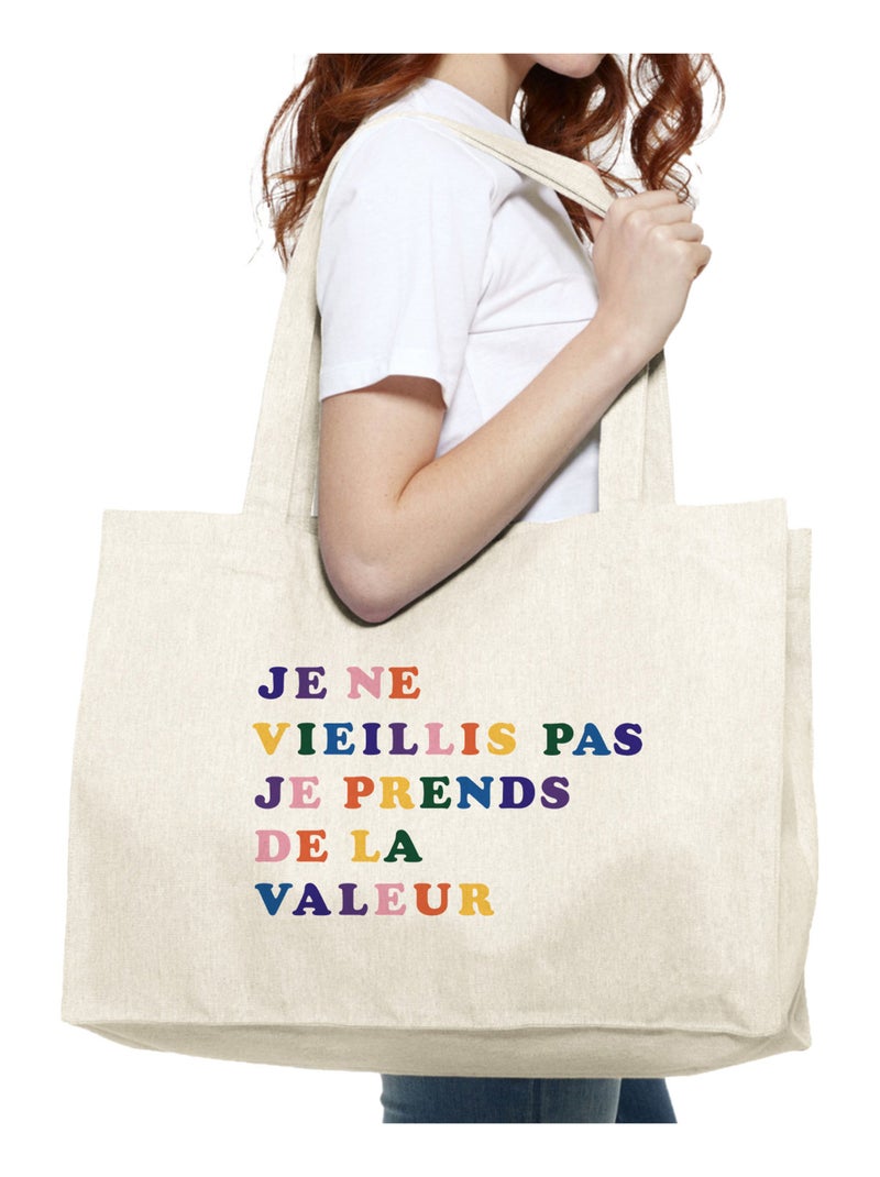 Grand cabas JE NE VIEILLIS PAS JE PRENDS DE LA VALEUR COLORE - Beige